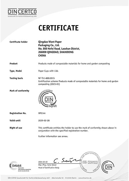 The main products of our company have passed international certifications including BRC, BPI, FSC, DIN, PHA Marine Biodegradable Certificate,ABA Home Compostable, and Sedex, and meet the certification and testing requirements of high-end catering companies for suppliers.